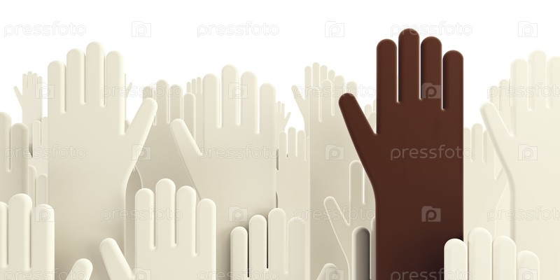 Темная рука среди множества белых