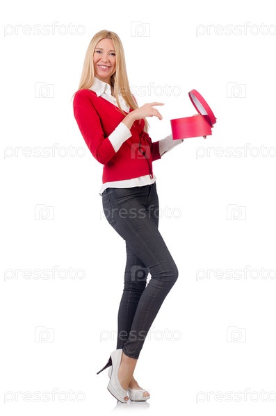 Молодая женщина с рождественским подарком