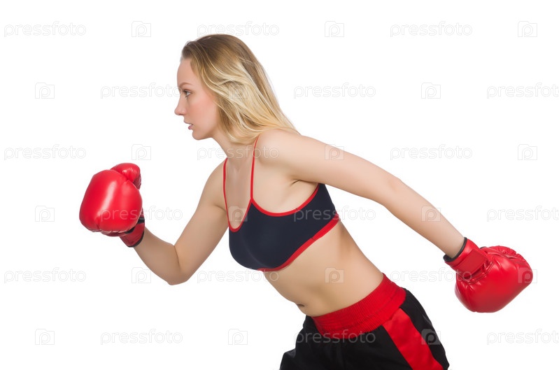 Женщина боксер на белом фоне