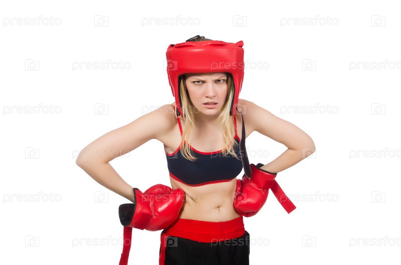 Женщина боксер на белом фоне