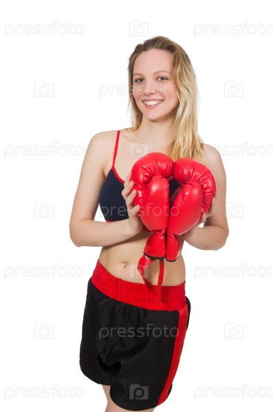 Женщина боксер на белом фоне