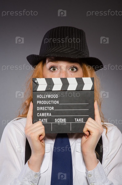 Молодая женщина с кинохлопушкой