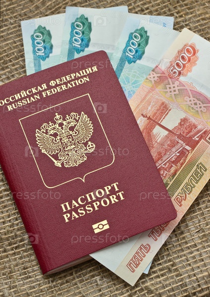 Российский паспорт с деньгами