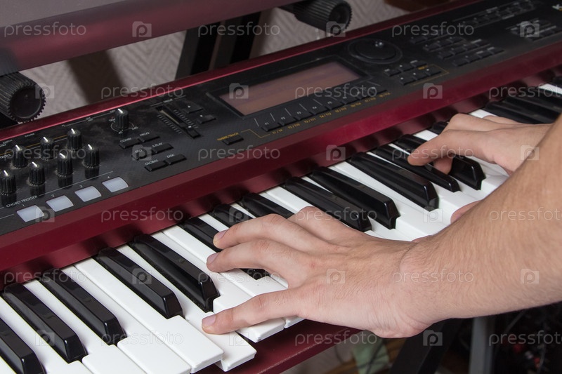 Человек играет на синтезаторе