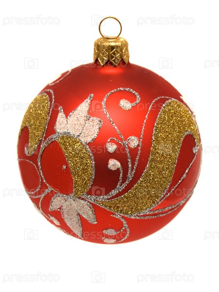 Красный новогодний шар на белом фоне
