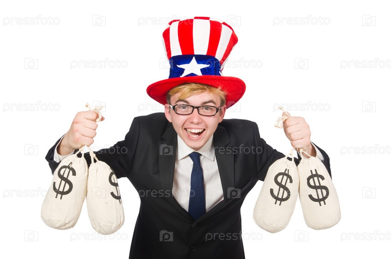 Мужчина с мешками денег