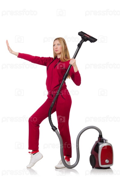Молодая женщина с пылесосом