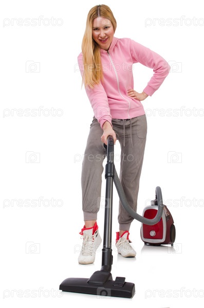 Молодая женщина с пылесосом
