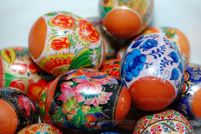 Разноцветные украшенные яйца