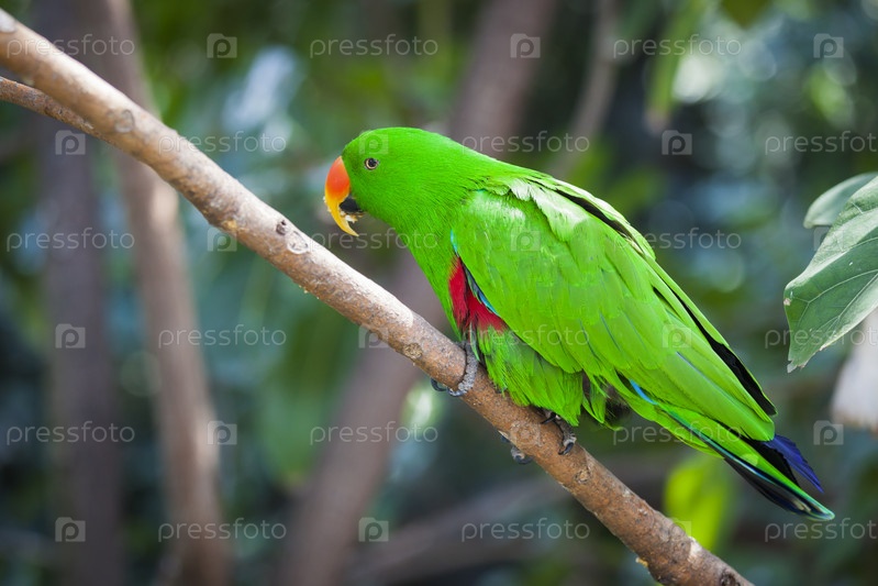 Самец индонезийского благородного зелено-красного попугая