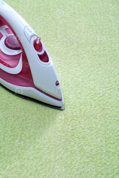 Электрический утюг на зеленом фоне