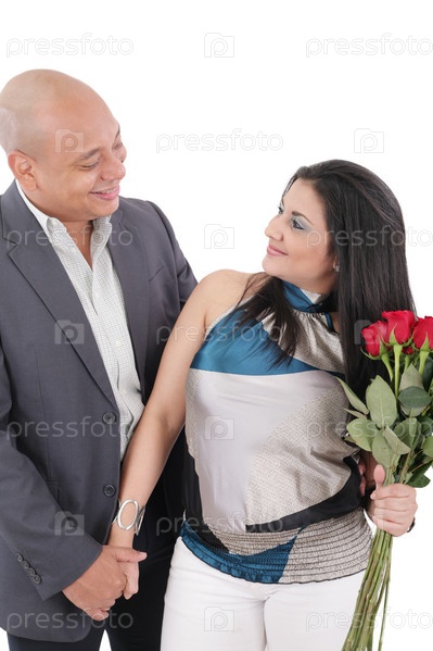 Пара с букетом красных роз