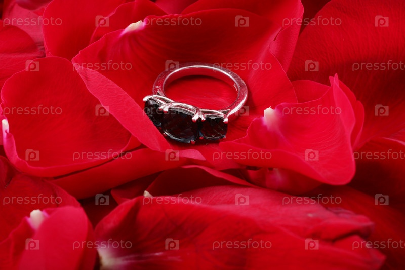 Кольцо в лепестках красных роз