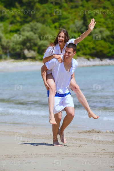 Счастливая пара отдыхает на пляже