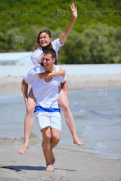 Счастливая пара отдыхает на пляже