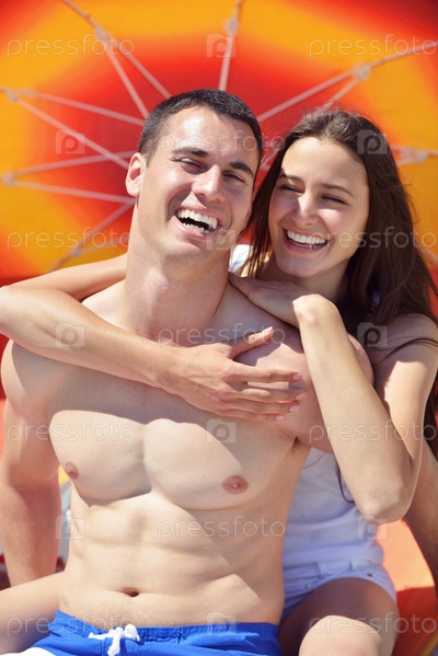 Счастливая пара отдыхает на пляже