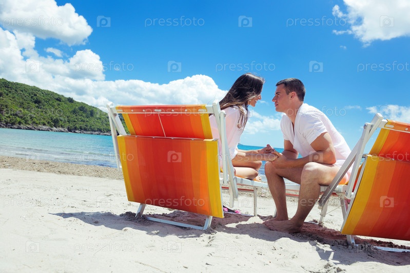 Счастливая пара отдыхает на пляже