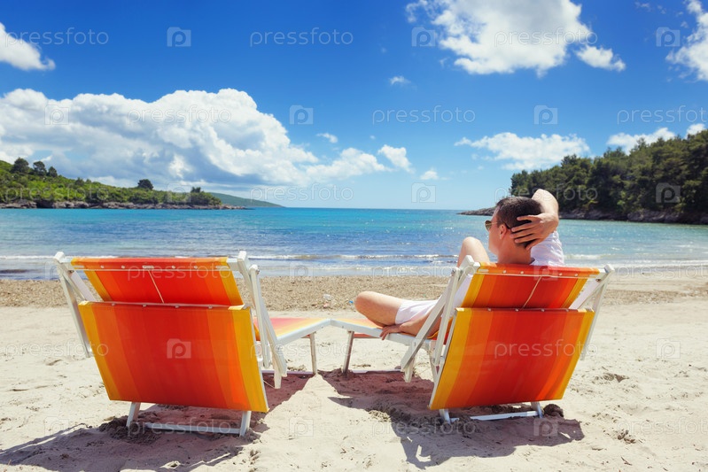 Счастливая пара отдыхает на пляже