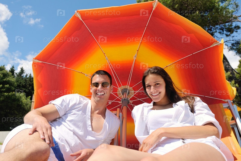 Счастливая пара отдыхает на пляже