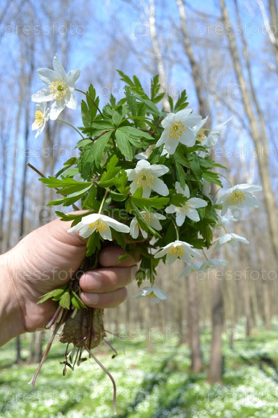 Букет подснежников в руке
