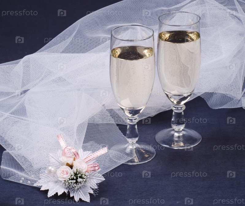 Бокалы с шампанским и белая вуаль