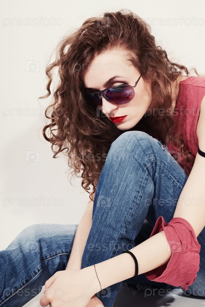 Портрет печальной молодой женщины в темных очках