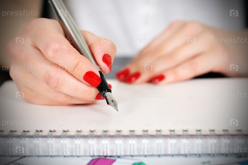 Рука пишет в блокноте