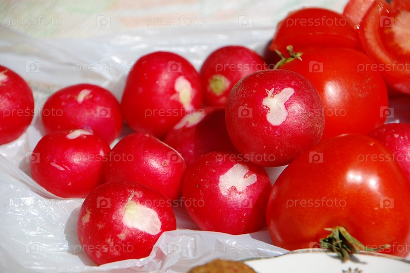 Спелые помидоры и редис