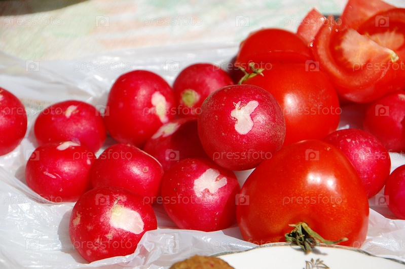 Спелые помидоры и редис