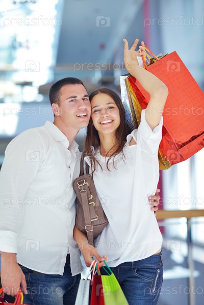 Счастливая молодая пара в магазине
