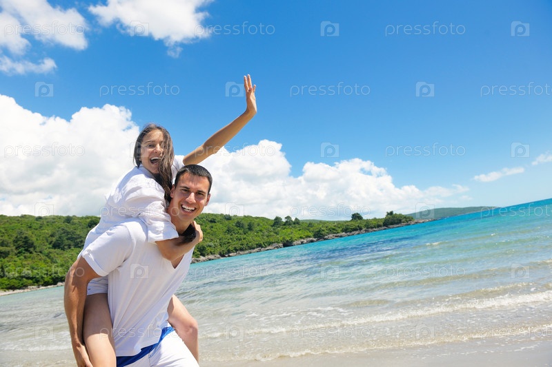 Счастливая пара на пляже