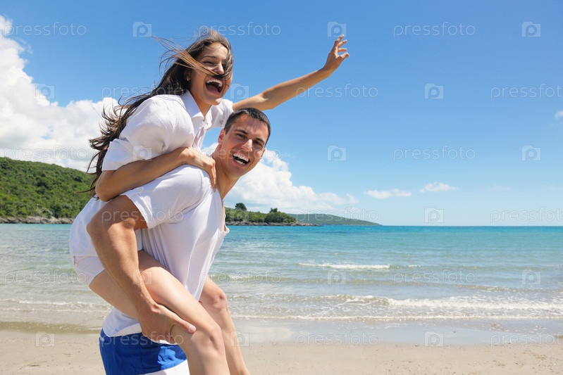 Счастливая пара на пляже