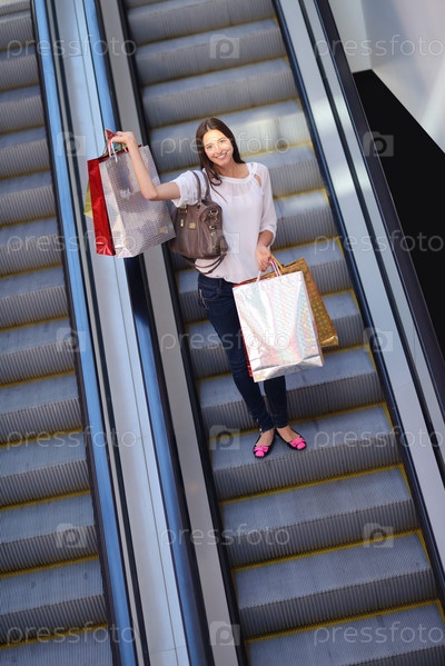 Счастливая молодая женщина в торговом центре