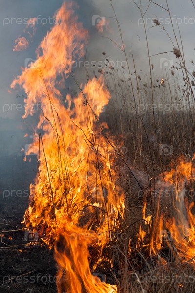 Горящая сухая трава