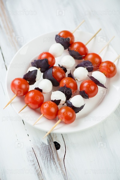 Шашлык с моцареллой, томатами и базиликом
