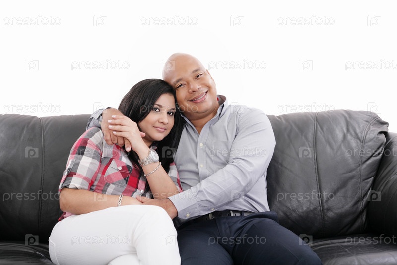 Пара сидит на диване