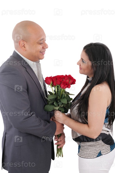 Пара с букетом красных роз