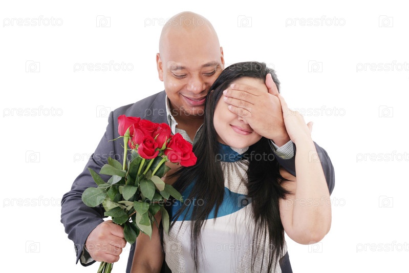 Пара с букетом красных роз