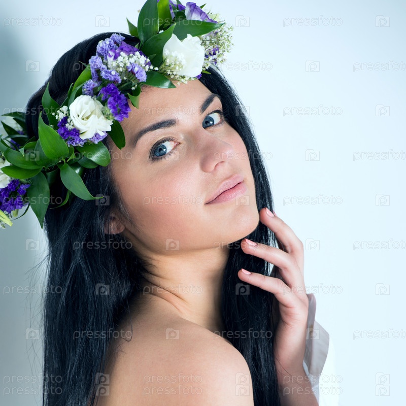 Красивая женщина в венке из цветов