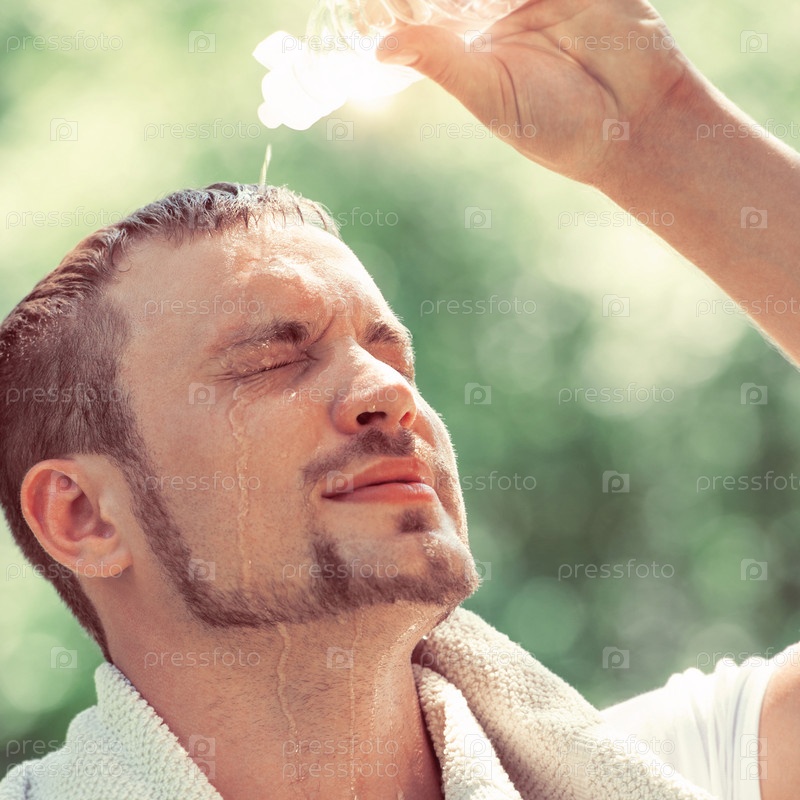 Спортсмен освежается водой