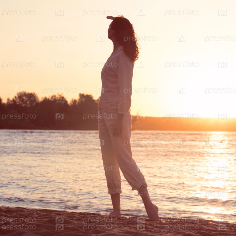 Женщина любуется солнцем