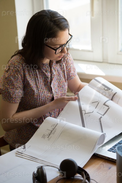 Женщина работает дома