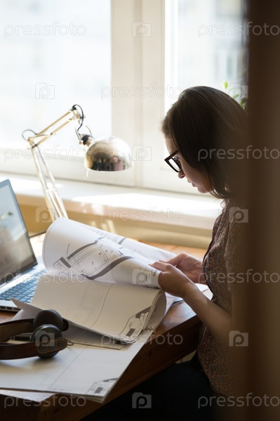 Женщина работает дома