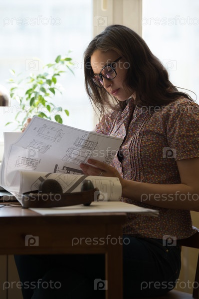 Женщина работает дома за столом