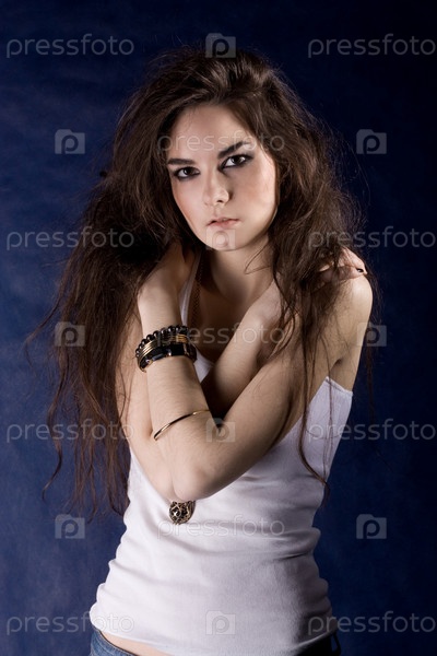 Красивая молодая девушка на синем фоне