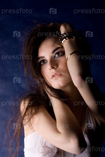 Красивая молодая девушка на синем фоне