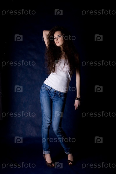 Красивая молодая девушка на темно-синем фоне