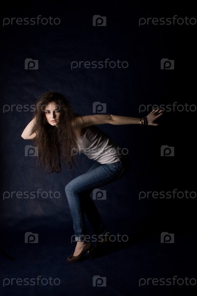 Красивая молодая девушка на темно-синем фоне