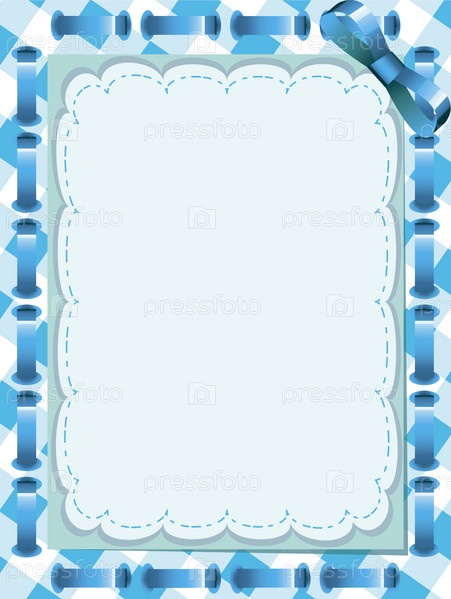 Голубая рамка с бантом на белом фоне