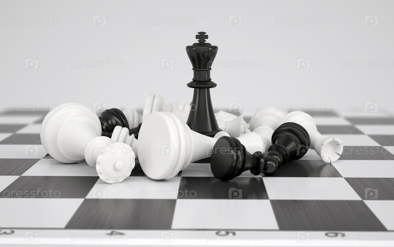 Черный шахматный король в разгар битвы